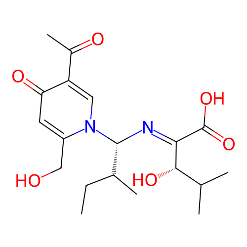 | SMILES | CCC(C)[C@@H](N=C([C@H](C(C)C)O)C(=O)O)N1C=C(C(=O)C=C1CO)C(=O)C |