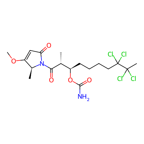 | SMILES | C[C@H]1C(=CC(=O)N1C(=O)[C@H](C)[C@@H](CCCCC(C(C)(Cl)Cl)(Cl)Cl)OC(=O)N)OC |