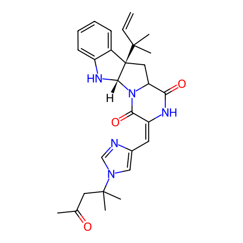 | SMILES | CC(=O)CC(C)(C)N1C=C(N=C1)/C=C/2\C(=O)N3[C@H]4[C@@](CC3C(=O)N2)(C5=CC=CC=C5N4)C(C)(C)C=C |