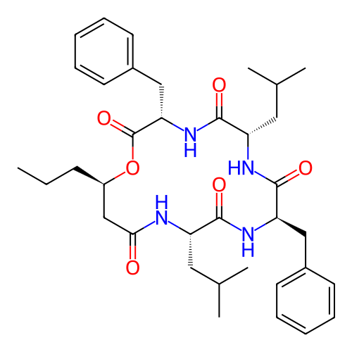 | SMILES | CCC[C@@H]1CC(=O)N[C@H](C(=O)N[C@@H](C(=O)N[C@H](C(=O)N[C@H](C(=O)O1)CC2=CC=CC=C2)CC(C)C)CC3=CC=CC=C3)CC(C)C |