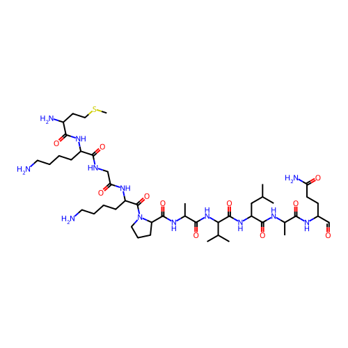 | SMILES | CC(C)CC(C(=O)NC(C)C(=O)NC(CCC(=O)N)C=O)NC(=O)C(C(C)C)NC(=O)C(C)NC(=O)C1CCCN1C(=O)C(CCCCN)NC(=O)CNC(=O)C(CCCCN)NC(=O)C(CCSC)N |