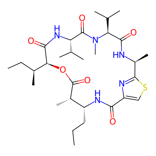 | SMILES | CCC[C@@H]1[C@@H](C(=O)O[C@H](C(=O)N[C@H](C(=O)N([C@H](C(=O)N[C@H](C2=NC(=CS2)C(=O)N1)C)C(C)C)C)C(C)C)[C@@H](C)CC)C |