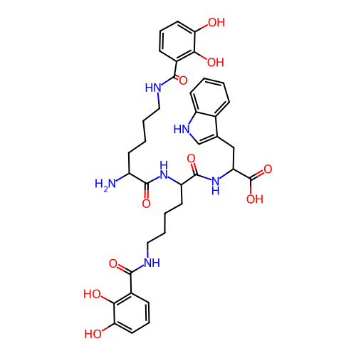 | SMILES | C1=CC=C2C(=C1)C(=CN2)CC(C(=O)O)NC(=O)C(CCCCNC(=O)C3=C(C(=CC=C3)O)O)NC(=O)C(CCCCNC(=O)C4=C(C(=CC=C4)O)O)N |