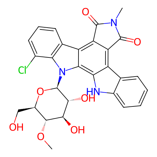 | SMILES | CN1C(=O)C2=C3C4=C(C(=CC=C4)Cl)N(C3=C5C(=C2C1=O)C6=CC=CC=C6N5)[C@H]7[C@@H]([C@H]([C@@H]([C@H](O7)CO)OC)O)O |