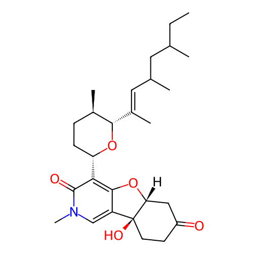 | SMILES | CCC(C)CC(C)/C=C(\C)/[C@H]1[C@@H](CC[C@H](O1)C2=C3C(=CN(C2=O)C)[C@]4(CCC(=O)C[C@H]4O3)O)C |
