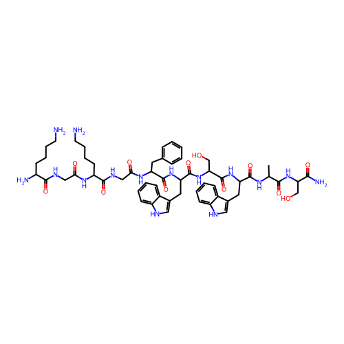 | SMILES | CC(C(=O)NC(CO)C(=O)N)NC(=O)C(CC1=CNC2=CC=CC=C21)NC(=O)C(CO)NC(=O)C(CC3=CNC4=CC=CC=C43)NC(=O)C(CC5=CC=CC=C5)NC(=O)CNC(=O)C(CCCCN)NC(=O)CNC(=O)C(CCCCN)N |