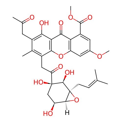 | SMILES | CC1=C(C2=C(C(=C1CC(=O)C)O)C(=O)C3=C(O2)C=C(C=C3C(=O)OC)OC)CC(=O)[C@]4(C[C@@H]([C@H]5[C@@]([C@@H]4O)(O5)CC=C(C)C)O)O |