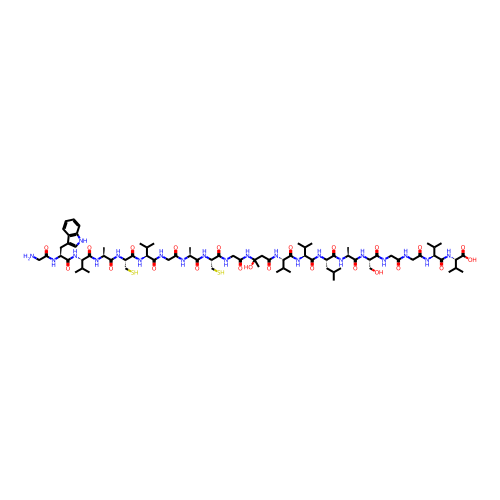 | SMILES | CC(C)C[C@H](NC(=O)[C@@H](NC(=O)[C@@H](NC(=O)CC(C)(O)NC(=O)CNC(=O)[C@H](CS)NC(=O)[C@H](C)NC(=O)CNC(=O)[C@@H](NC(=O)[C@H](CS)NC(=O)[C@H](C)NC(=O)[C@@H](NC(=O)[C@H](CC1=CNC2=C1C=CC=C2)NC(=O)CN)C(C)C)C(C)C)C(C)C)C(C)C)C(=O)N[C@@H](C)C(=O)N[C@@H](CO)C(=O)NCC(=O)NCC(=O)N[C@@H](C(C)C)C(=O)N[C@@H](C(C)C)C(O)=O |