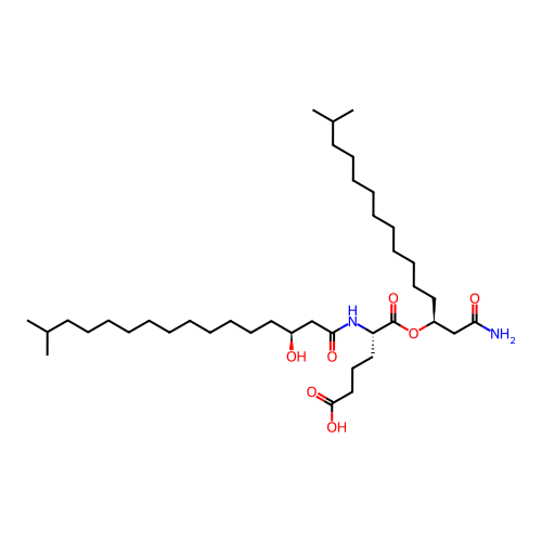| SMILES | CC(C)CCCCCCCCCCC[C@@H](CC(=O)N[C@@H](CCCC(=O)O)C(=O)O[C@@H](CCCCCCCCCCC(C)C)CC(=O)N)O |