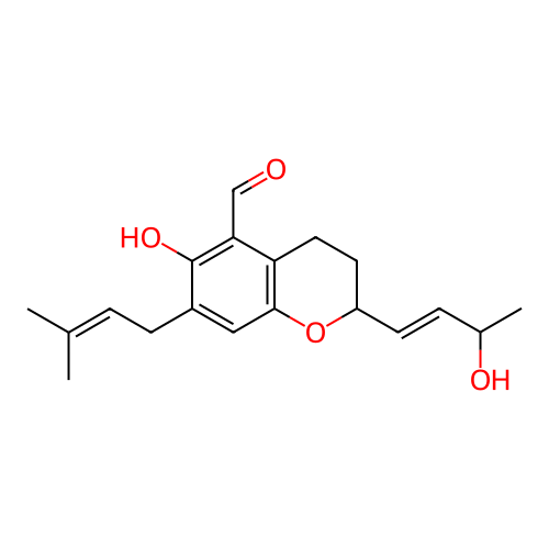 | InChI | InChI=1S/C19H24O4/c1-12(2)4-6-14-10-18-16(17(11-20)19(14)22)9-8-15(23-18)7-5-13(3)21/h4-5,7,10-11,13,15,21-22H,6,8-9H2,1-3H3/b7-5+ |