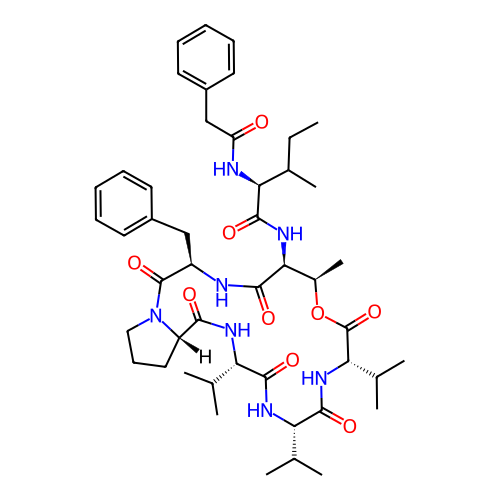 | SMILES | CCC(C)[C@@H](C(=O)N[C@H]1[C@H](OC(=O)[C@@H](NC(=O)[C@@H](NC(=O)[C@@H](NC(=O)[C@@H]2CCCN2C(=O)[C@H](NC1=O)CC3=CC=CC=C3)C(C)C)C(C)C)C(C)C)C)NC(=O)CC4=CC=CC=C4 |