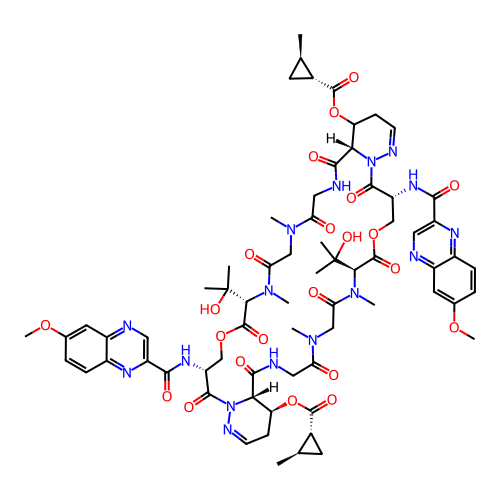 | SMILES | C[C@@H]1C[C@H]1C(=O)O[C@H]2CC=NN3[C@@H]2C(=O)NCC(=O)N(CC(=O)N([C@H](C(=O)OC[C@H](C(=O)N4[C@@H](C(CC=N4)OC(=O)[C@@H]5C[C@H]5C)C(=O)NCC(=O)N(CC(=O)N([C@H](C(=O)OC[C@H](C3=O)NC(=O)C6=CN=C7C=C(C=CC7=N6)OC)C(C)(C)O)C)C)NC(=O)C8=CN=C9C=C(C=CC9=N8)OC)C(C)(C)O)C)C |