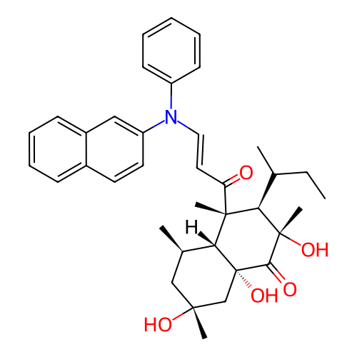 | InChI | InChI=1S/C37H45NO5/c1-7-24(2)31-35(5,32-25(3)22-34(4,41)23-37(32,43)33(40)36(31,6)42)30(39)19-20-38(28-15-9-8-10-16-28)29-18-17-26-13-11-12-14-27(26)21-29/h8-21,24-25,31-32,41-43H,7,22-23H2,1-6H3/b20-19+/t24?,25-,31-,32-,34-,35-,36+,37-/m1/s1 |
