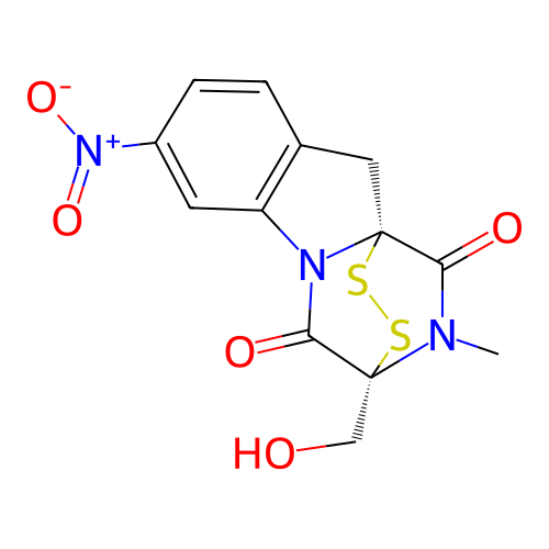 | SMILES | CN1C(=O)[C@]23CC4=C(C=C([N+](=O)[O-])C=C4)N2C(=O)[C@@]1(CO)SS3 |