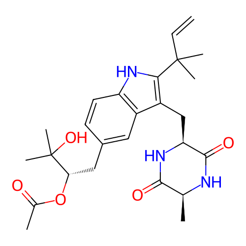| SMILES | C[C@H]1C(=O)N[C@H](C(=O)N1)CC2=C(NC3=C2C=C(C=C3)C[C@@H](C(C)(C)O)OC(=O)C)C(C)(C)C=C |