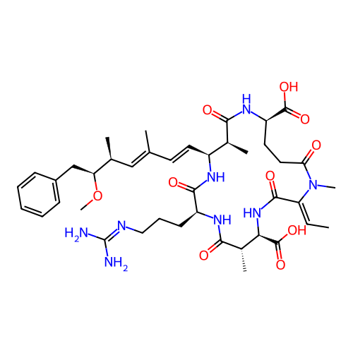 SMILES C/C=C\1/C(=O)N[C@H]([C@@H](C(=O)N[C@H](C(=O)N[C@H]([C@@H](C(=O)N[C@H](CCC(=O)N1C)C(=O)O)C)/C=C/C(=C/[C@H](C)[C@H](CC2=CC=CC=C2)OC)/C)CCCN=C(N)N)C)C(=O)O