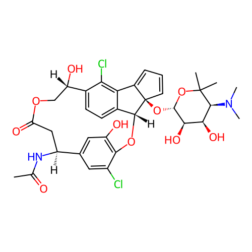 | SMILES | CC(=O)N[C@H]1CC(=O)OC[C@@H](C2=C(C3=C(C=C2)[C@H]([C@@]4(C3=CC=C4)O[C@H]5[C@@H]([C@@H]([C@@H](C(O5)(C)C)N(C)C)O)O)OC6=C(C=C1C=C6Cl)O)Cl)O |