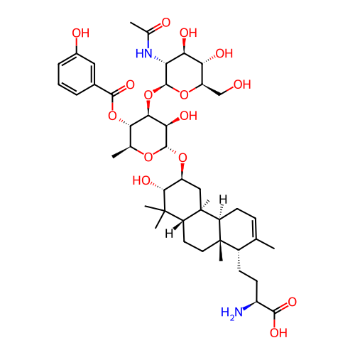 | SMILES | C[C@H]1[C@@H]([C@H]([C@H]([C@@H](O1)O[C@H]2C[C@@]3([C@H](CC[C@@]4([C@@H]3CC=C([C@@H]4CC[C@@H](C(=O)O)N)C)C)C([C@@H]2O)(C)C)C)O)O[C@H]5[C@@H]([C@H]([C@@H]([C@H](O5)CO)O)O)NC(=O)C)OC(=O)C6=CC(=CC=C6)O |