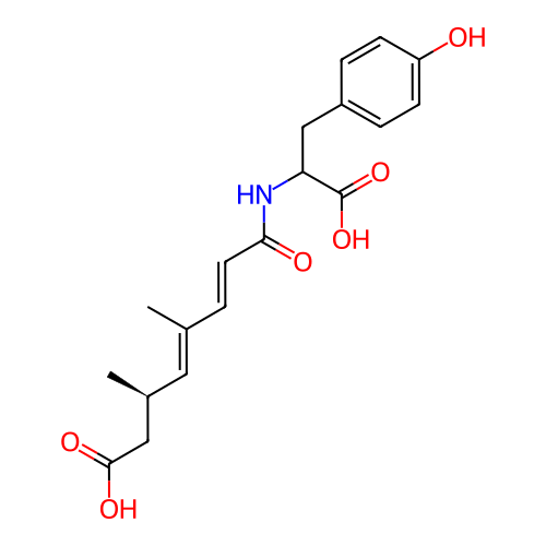| InChI | InChI=1S/C19H23NO6/c1-12(9-13(2)10-18(23)24)3-8-17(22)20-16(19(25)26)11-14-4-6-15(21)7-5-14/h3-9,13,16,21H,10-11H2,1-2H3,(H,20,22)(H,23,24)(H,25,26)/b8-3+,12-9+/t13-,16?/m0/s1 |