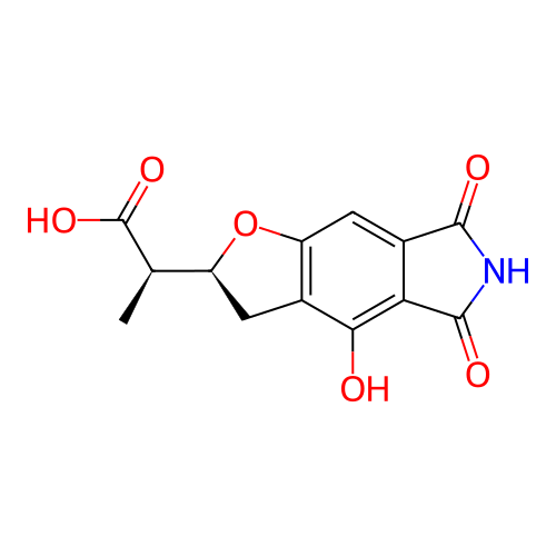| SMILES | C[C@H]([C@@H]1CC2=C(O1)C=C3C(=C2O)C(=O)NC3=O)C(=O)O |