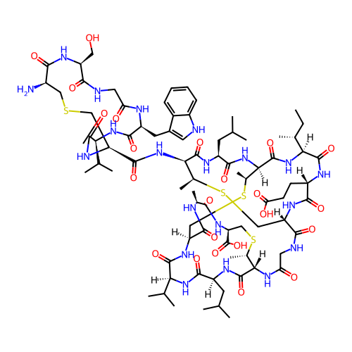 | SMILES | CC[C@@H](C)[C@@H]1NC(=O)[C@@H]2NC(=O)[C@H](CC(C)C)NC(=O)[C@H](NC(=O)[C@@H]3CSC[C@@H](N)C(=O)N[C@@H](CO)C(=O)NCC(=O)N[C@@H](CC4=CNC5=CC=CC=C45)C(=O)N[C@@H](C(C)C)C(=O)N3)[C@H](C)SC[C@H](NC(=O)[C@H](CCC(=O)O)NC1=O)C(=O)NCC(=O)N[C@@H]1C(=O)N[C@@H](CC(C)C)C(=O)N[C@@H](C(C)C)C(=O)N[C@@H](CS[C@H]2C)C(=O)N[C@@H](C)C(=O)N[C@H](C(=O)O)CS[C@H]1C |