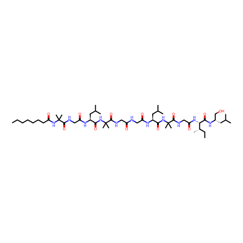 | SMILES | CCCCCCCC(=O)NC(C)(C)C(=O)NCC(=O)N[C@@H](CC(C)C)C(=O)NC(C)(C)C(=O)NCC(=O)NCC(=O)N[C@@H](CC(C)C)C(=O)NC(C)(C)C(=O)NCC(=O)N[C@@H]([C@@H](C)CC)C(=O)N[C@@H](CC(C)C)CO |