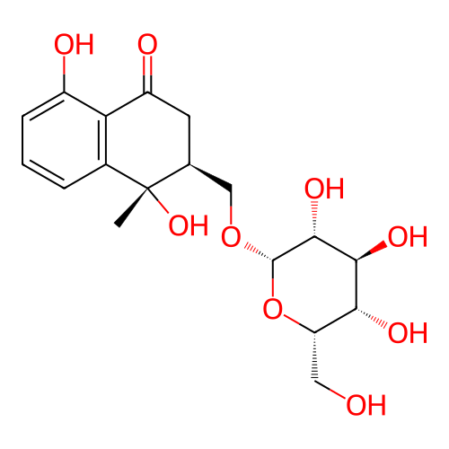 | InChI | InChI=1S/C18H24O9/c1-18(25)8(5-11(21)13-9(18)3-2-4-10(13)20)7-26-17-16(24)15(23)14(22)12(6-19)27-17/h2-4,8,12,14-17,19-20,22-25H,5-7H2,1H3/t8-,12-,14+,15-,16+,17-,18-/m0/s1 |
