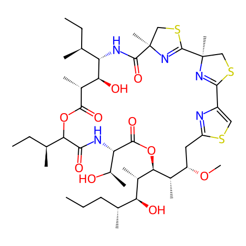 | SMILES | CCC[C@@H](C)[C@@H]([C@H](C)[C@@H]1[C@H]([C@H](CC2=NC(=CS2)C3=N[C@](CS3)(C4=N[C@](CS4)(C(=O)N[C@H]([C@H]([C@H](C(=O)OC(C(=O)N[C@H](C(=O)O1)[C@@H](C)O)[C@@H](C)CC)C)O)[C@@H](C)CC)C)C)OC)C)O |