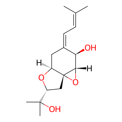 | InChI | InChI=1S/C16H24O4/c1-9(2)5-6-10-7-11-16(14(20-16)13(10)17)8-12(19-11)15(3,4)18/h5-6,11-14,17-18H,7-8H2,1-4H3/b10-6-/t11-,12+,13+,14-,16+/m0/s1 |