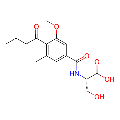 | SMILES | CCCC(=O)C1=C(C=C(C=C1OC)C(=O)N[C@@H](CO)C(=O)O)C |