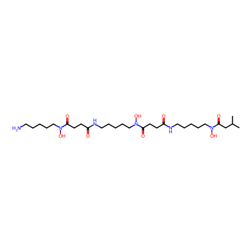 | SMILES | CC(C)CC(=O)N(CCCCCNC(=O)CCC(=O)N(CCCCCNC(=O)CCC(=O)N(CCCCCN)O)O)O |