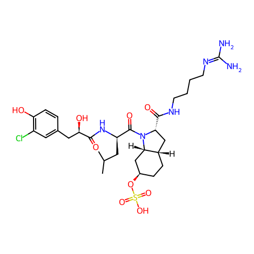 | SMILES | CC(C)C[C@H](C(=O)N1[C@H]2C[C@@H](CC[C@H]2C[C@H]1C(=O)NCCCCN=C(N)N)OS(=O)(=O)O)NC(=O)[C@@H](CC3=CC(=C(C=C3)O)Cl)O |
