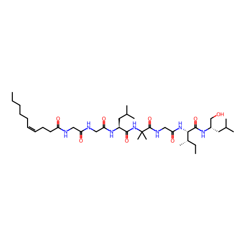 | SMILES | CCCCC/C=C\CCC(=O)NCC(=O)NCC(=O)N[C@@H](CC(C)C)C(=O)NC(C)(C)C(=O)NCC(=O)N[C@@H]([C@@H](C)CC)C(=O)N[C@@H](CC(C)C)CO |