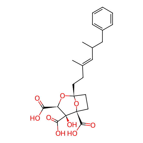 | InChI | InChI=1S/C23H28O9/c1-14(12-15(2)13-16-6-4-3-5-7-16)8-9-21-10-11-22(32-21,19(26)27)23(30,20(28)29)17(31-21)18(24)25/h3-7,12,15,17,30H,8-11,13H2,1-2H3,(H,24,25)(H,26,27)(H,28,29)/b14-12+/t15?,17-,21+,22+,23-/m1/s1 |