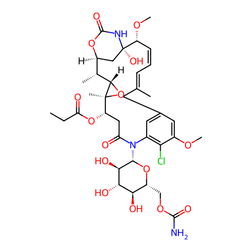 | SMILES | CCC(=O)O[C@H]1CC(=O)N(C2=C(C(=CC(=C2)C/C(=C\C=C/[C@H]([C@]3(C[C@@H]([C@H]([C@H]4[C@]1(O4)C)C)OC(=O)N3)O)OC)/C)OC)Cl)[C@H]5[C@@H]([C@H]([C@@H]([C@H](O5)COC(=O)N)O)O)O |