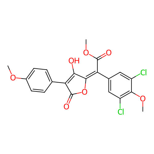 | SMILES | COC1=CC=C(C=C1)C2=C(/C(=C(/C3=CC(=C(C(=C3)Cl)OC)Cl)\C(=O)OC)/OC2=O)O |