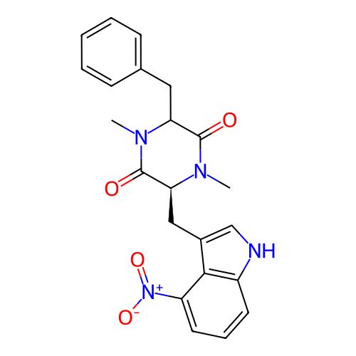 | SMILES | CN1[C@H](C(=O)N(C(C1=O)CC2=CC=CC=C2)C)CC3=CNC4=C3C(=CC=C4)[N+](=O)[O-] |