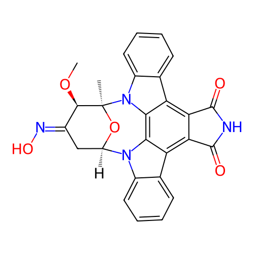 | SMILES | C[C@@]12[C@@H](/C(=N/O)/C[C@@H](O1)N3C4=CC=CC=C4C5=C6C(=C7C8=CC=CC=C8N2C7=C53)C(=O)NC6=O)OC |