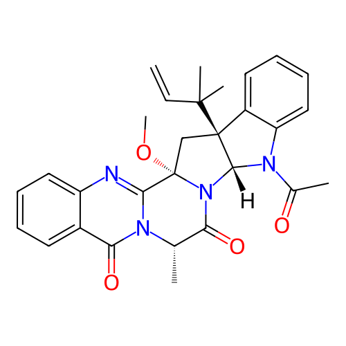 | SMILES | C[C@H]1C(=O)N2[C@@H]3[C@](C[C@@]2(C4=NC5=CC=CC=C5C(=O)N14)OC)(C6=CC=CC=C6N3C(=O)C)C(C)(C)C=C |