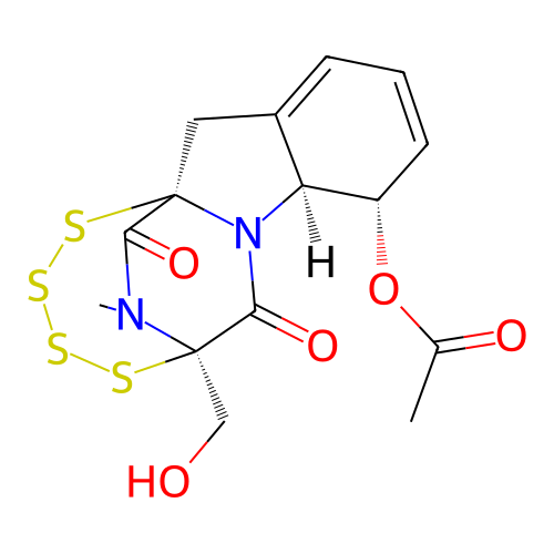| SMILES | CC(=O)O[C@H]1C=CC=C2[C@@H]1N3C(=O)[C@@]4(N(C(=O)[C@@]3(C2)SSSS4)C)CO |