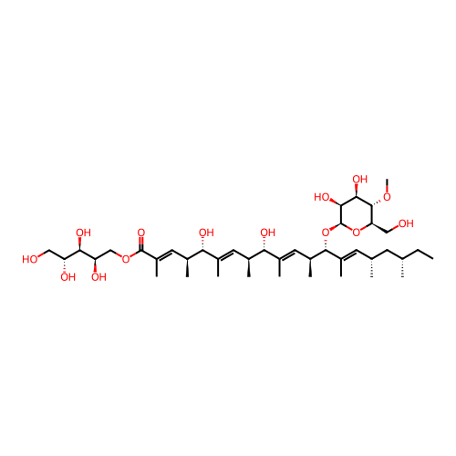 | SMILES | CC[C@H](C)C[C@H](C)/C=C(\C)/[C@H]([C@@H](C)/C=C(\C)/[C@H]([C@@H](C)/C=C(\C)/[C@H]([C@@H](C)/C=C(\C)/C(=O)OC[C@H]([C@@H]([C@@H](CO)O)O)O)O)O)O[C@H]1[C@H]([C@H]([C@@H]([C@H](O1)CO)OC)O)O |