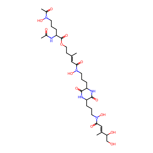 | SMILES | C/C(=C\C(=O)N(CCCC1C(=O)NC(C(=O)N1)CCCN(C(=O)/C=C(\C)/C(CO)O)O)O)/CCOC(=O)C(CCCN(C(=O)C)O)NC(=O)C |