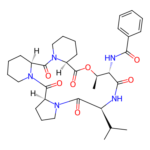 | SMILES | C[C@@H]1[C@@H](C(=O)N[C@H](C(=O)N2CCC[C@H]2C(=O)N3CCCC[C@H]3C(=O)N4CCCC[C@H]4C(=O)O1)C(C)C)NC(=O)C5=CC=CC=C5 |