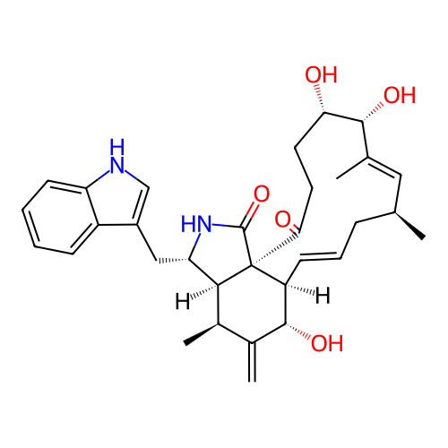 | InChI | InChI=1S/C32H40N2O5/c1-17-8-7-10-23-30(38)20(4)19(3)28-25(15-21-16-33-24-11-6-5-9-22(21)24)34-31(39)32(23,28)27(36)13-12-26(35)29(37)18(2)14-17/h5-7,9-11,14,16-17,19,23,25-26,28-30,33,35,37-38H,4,8,12-13,15H2,1-3H3,(H,34,39)/b10-7+,18-14+/t17-,19+,23-,25-,26-,28-,29+,30+,32+/m0/s1 |