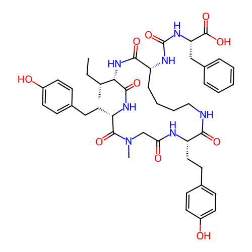 | SMILES | CC[C@@H](C)[C@@H]1NC(=O)[C@H](NC(=O)N[C@@H](CC2=CC=CC=C2)C(=O)O)CCCCNC(=O)[C@H](CCC2=CC=C(O)C=C2)NC(=O)CN(C)C(=O)[C@H](CCC2=CC=C(O)C=C2)NC1=O |