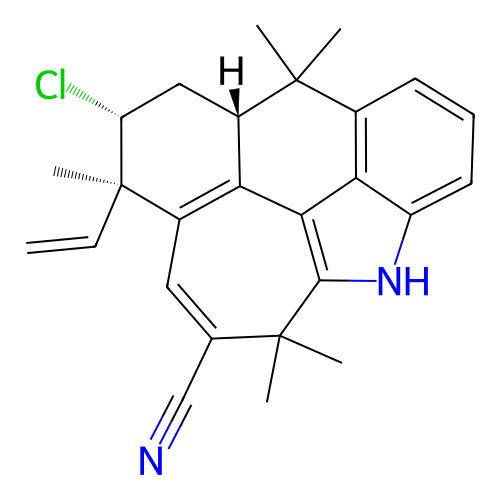| SMILES | C[C@@]1([C@@H](C[C@H]2C3=C1C=C(C(C4=C3C5=C(C2(C)C)C=CC=C5N4)(C)C)C#N)Cl)C=C |