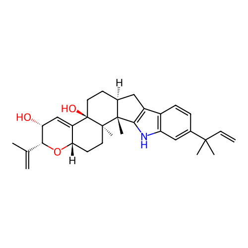 | SMILES | CC(=C)[C@@H]1[C@@H](C=C2[C@@H](O1)CC[C@]3([C@]2(CC[C@@H]4[C@@]3(C5=C(C4)C6=C(N5)C=C(C=C6)C(C)(C)C=C)C)O)C)O |