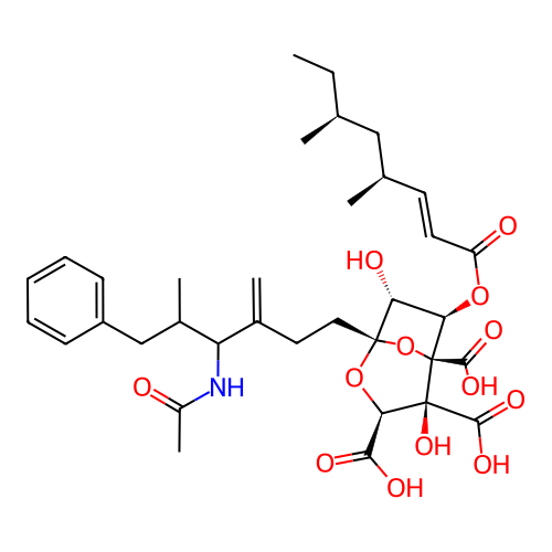 | SMILES | CC[C@H](C)C[C@H](C)/C=C/C(=O)O[C@@H]1[C@H]([C@]2(O[C@@H]([C@]([C@@]1(O2)C(=O)O)(C(=O)O)O)C(=O)O)CCC(=C)C(C(C)CC3=CC=CC=C3)NC(=O)C)O |