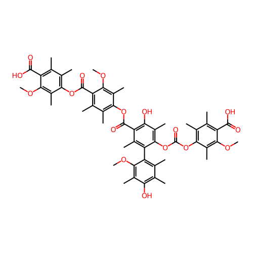 | SMILES | CC1=C(C(=C(C(=C1C)O)C)OC)C2=C(C(=C(C(=C2OC(=O)OC3=C(C(=C(C(=C3C)OC)C(=O)O)C)C)C)O)C(=O)OC4=C(C(=C(C(=C4C)OC)C(=O)OC5=C(C(=C(C(=C5C)OC)C(=O)O)C)C)C)C)C |
