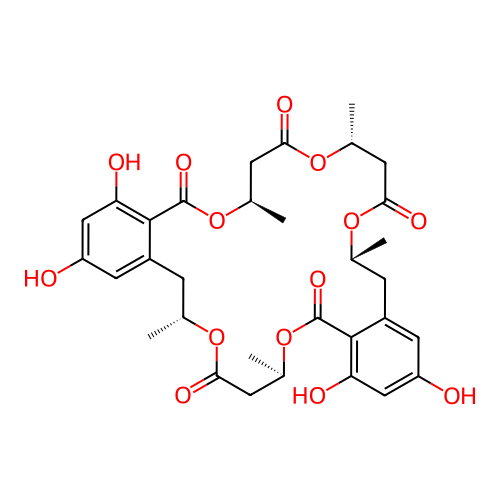 | SMILES | C[C@@H]1CC2=CC(=CC(=C2C(=O)O[C@@H](CC(=O)O[C@@H](CC3=CC(=CC(=C3C(=O)O[C@@H](CC(=O)O[C@@H](CC(=O)O1)C)C)O)O)C)C)O)O |